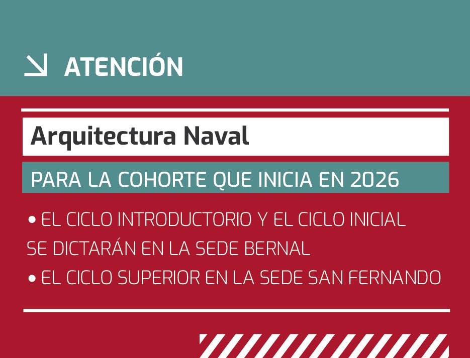 El Plan de Estudios de la carrera Arquitectura Naval cuenta con aprobación del Ministerio de Educación de la Nación por la Resolución Nº 664/04, nota DNGU Nº 362/16.