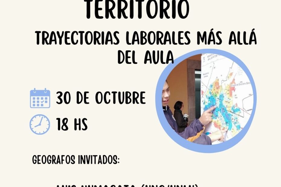 “De la carrera al territorio. Trayectorias laborales más allá del aula” será en modalidad virtual. El 30 de octubre de 2025 se realizará la charla… Read More »Charla sobre las posibilidades de inserción laboral de la Licenciatura en Geografía
