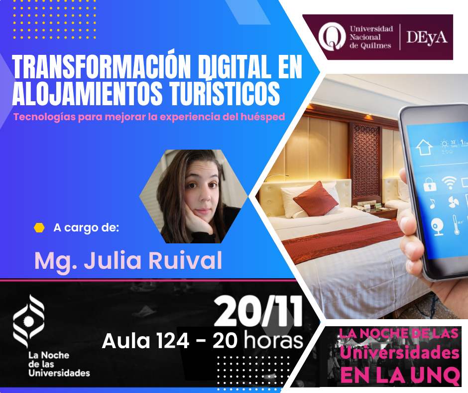 El jueves 20 de noviembre de 2025, en el marco de la Noche de las Universidades que organiza el Consejo Interuniversitario Nacional (CIN), la Mg. Julia Ruival estará dando una charla especial en la Universidad Nacional de Quilmes (UNQ).