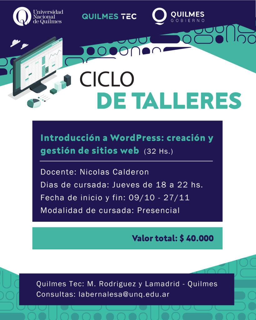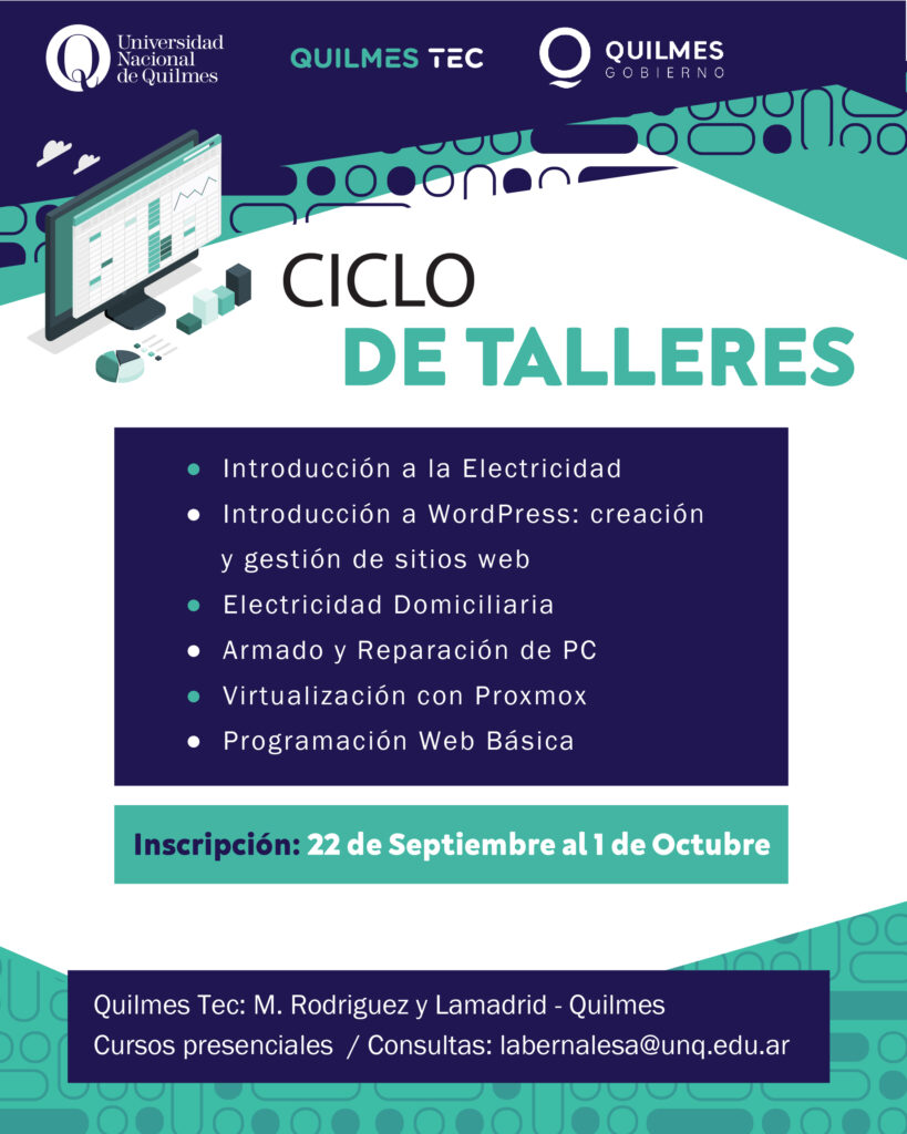 Quilmes Tec, programa que llevan adelante la Escuela de Educación Profesional Universitaria La Bernalesa, la Universidad Nacional de Quilmes (UNQ) y el Municipio abre la inscripción a una amplia oferta de talleres presenciales arancelados: