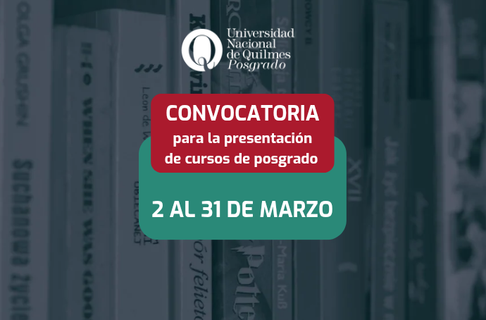 Invitamos desde el 2 al 31 de marzo a presentar cursos de posgrado a miembros de la comunidad UNQ que cuenten con titulación de posgrado (Especialista, Magíster o superior).