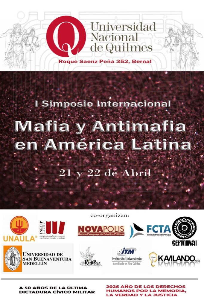 La Universidad Nacional de Quilmes (UNQ), a través del Departamento de Ciencias Sociales, llevará adelante el I Simposio “Mafia y Antimafia en América Latina”, que se realizará los días 21 y 22 de abril de 2026 en las instalaciones de la universidad.