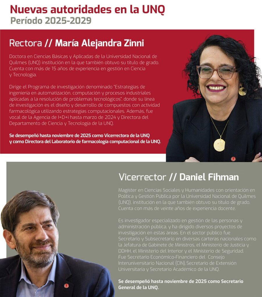 El lunes 20 de octubre de 2025 la Asamblea Universitaria de la Universidad Nacional de Quilmes (UNQ) se reunió en sesión extraordinaria para elegir Rector/a y Vicerrector/a para el período 2025/2029.