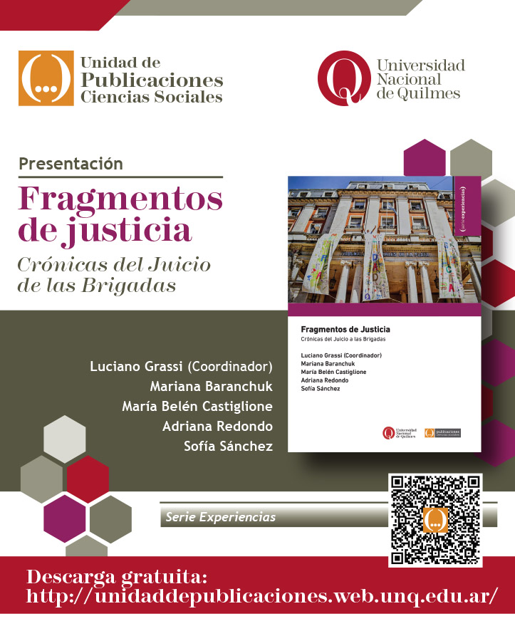 Se encuentra disponible un nuevo lanzamiento de la Unidad de publicaciones del Departamento de Ciencias Sociales de la Universidad Nacional de Quilmes (UNQ): “Fragmentos de Justicia. Crónicas del Juicio a las Brigadas”.