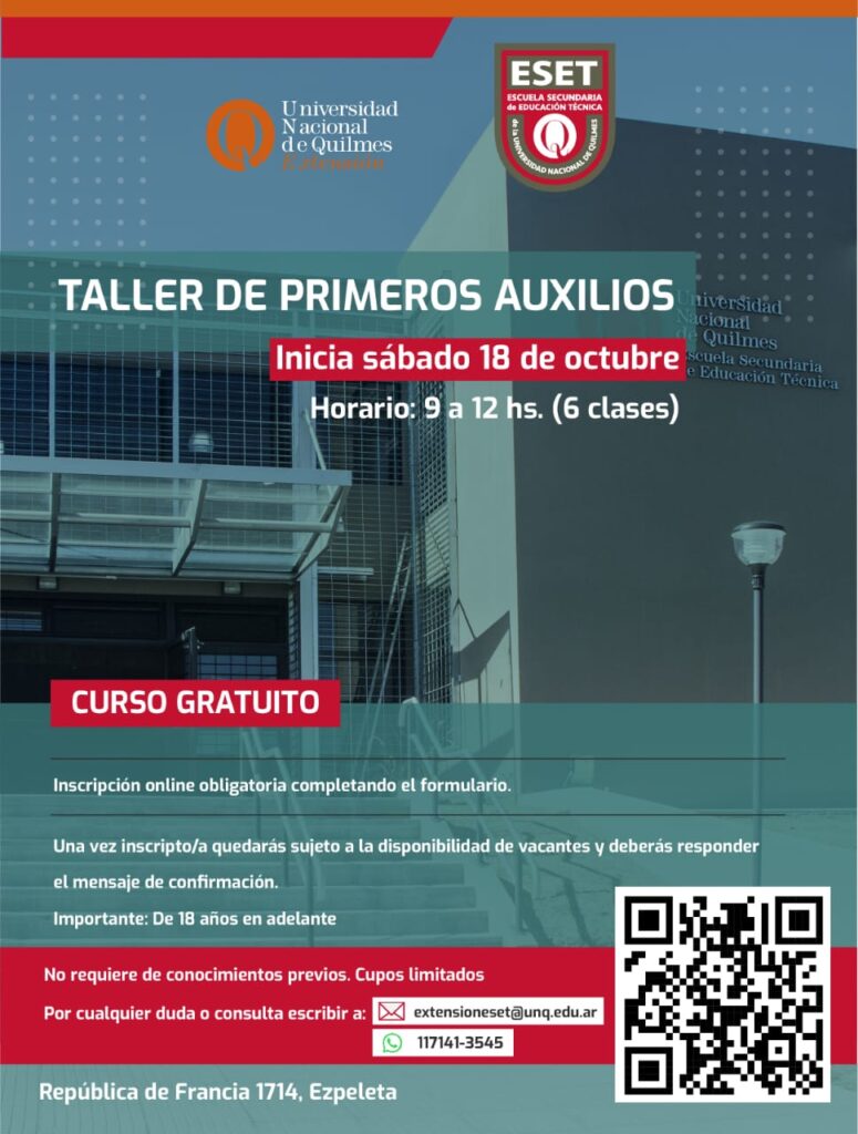 El 18 de octubre de 2025 comienza en la Escuela Secundaria de Educación Técnica (ESET) de la Universidad Nacional de Quilmes (UNQ), el Taller gratuito de Primeros Auxilios.