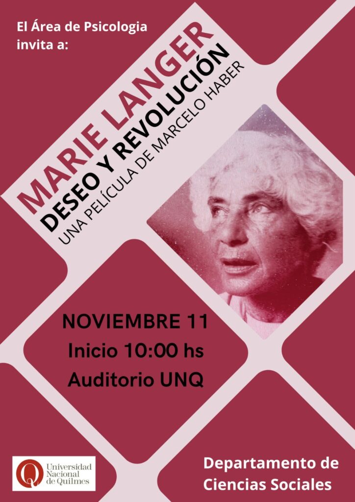 El 11 de noviembre de 2025 se proyectará en la Universidad Nacional de Quilmes (UNQ) la película “Marie Langer: Deseo y Revolución”, dirigida por Marcelo Haber.