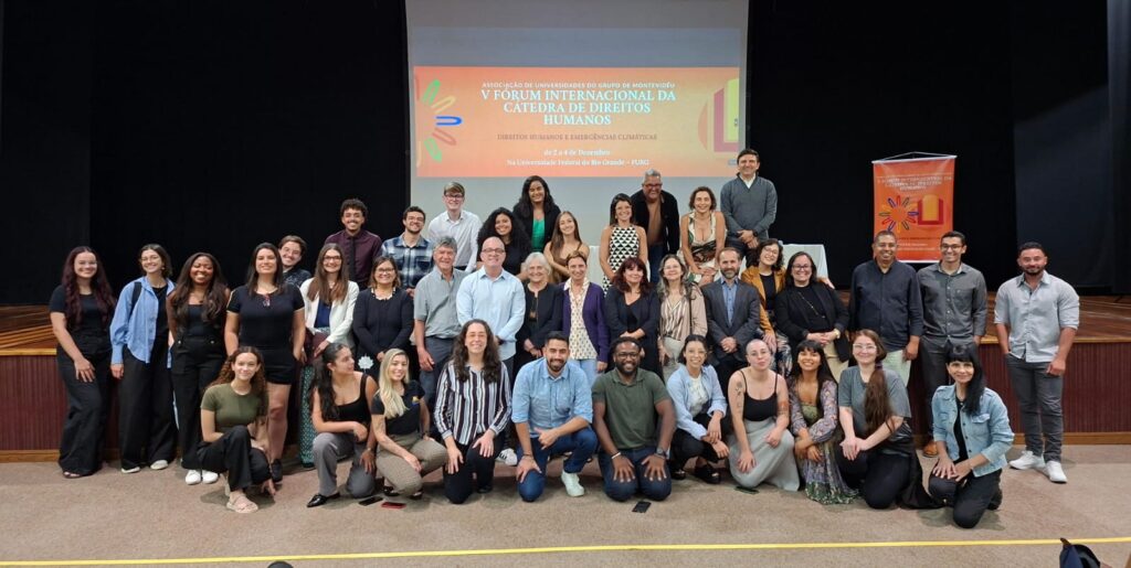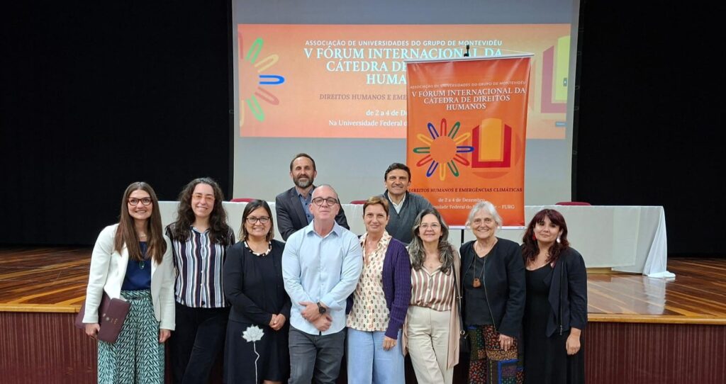 Los días 2, 3 y 4 de diciembre de 2025 se realizó el V Foro Internacional de Derechos Humanos de la Cátedra de la Asociación de Universidades del Grupo Montevideo (AUGM) en el Campus Carreiros de la Universidad Federal de Rio Grande (FURG) Brasil. El evento trabajó durante las tres jornadas la temática “Derechos Humanos y Emergencias Climáticas” junto a investigadores y estudiantes de países de América Latina.