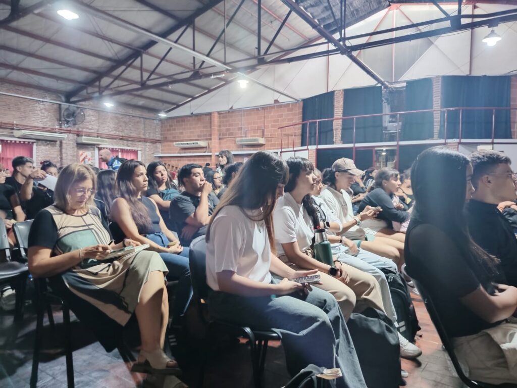 Luego se dio paso a la mesa de presentación previa a la participación de Pablo Díaz. En ese marco tomaron la palabra la directora del Departamento de Ciencias Sociales, Alejandra Rodríguez, y el director de Educación Superior bonaerense, Carlos Grande. A continuación, se sumaron las intervenciones de la vicepresidenta del Centro de Estudiantes del ISFD N.º 24, Sabrina Morán; la presidenta del Centro de Estudiantes del ISFD N.º 101, Rebeca Román; y la presidenta del CECSEA, María Luz Páez. Fueron ellas quienes invitaron a Pablo Díaz a subir al escenario.
