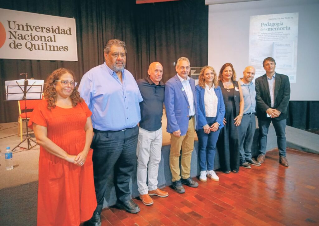 Participaron de la jornada, dando la bienvenida, a los 300 asistentes, el vicerrector de la UNQ, Daniel Fihman; el director de Educación Superior de la Provincia de Buenos Aires, Carlos Grande; la directora del Departamento de Ciencias Sociales de la UNQ, Alejandra Rodríguez, y el vicedirector del Departamento de Ciencias Sociales, Daniel Busdygan; quienes acompañaron una propuesta orientada a fortalecer el trabajo sobre memoria y derechos humanos en el ámbito educativo.