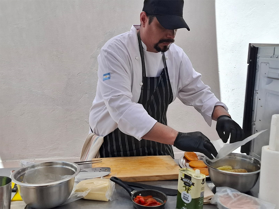 Javier Cabral, cocinero de la Escuela Secundaria de Educación Técnica de la Universidad Nacional de Quilmes (ESET-UNQ), obtuvo la medalla de plata en un campeonato gastronómico en Uruguay con un plato de hamburguesa vegetariana con guarnición de papas.